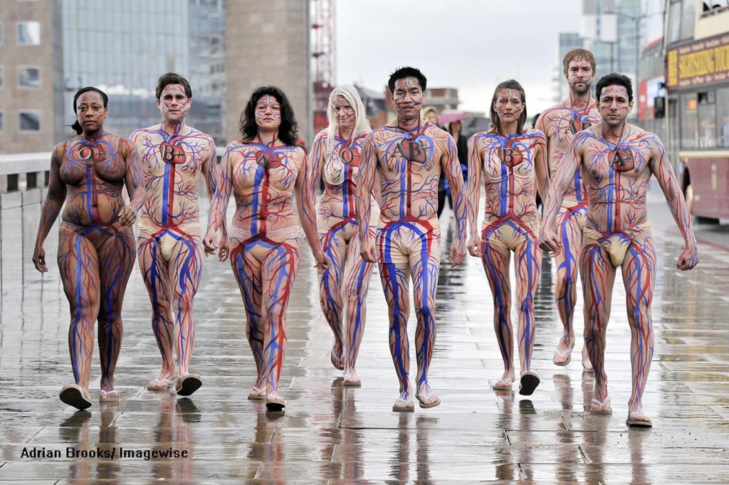 Carolyn and her team painted several models with the circulatory system ifor a PR stunt for ‘The Blood Transfusion Service’.